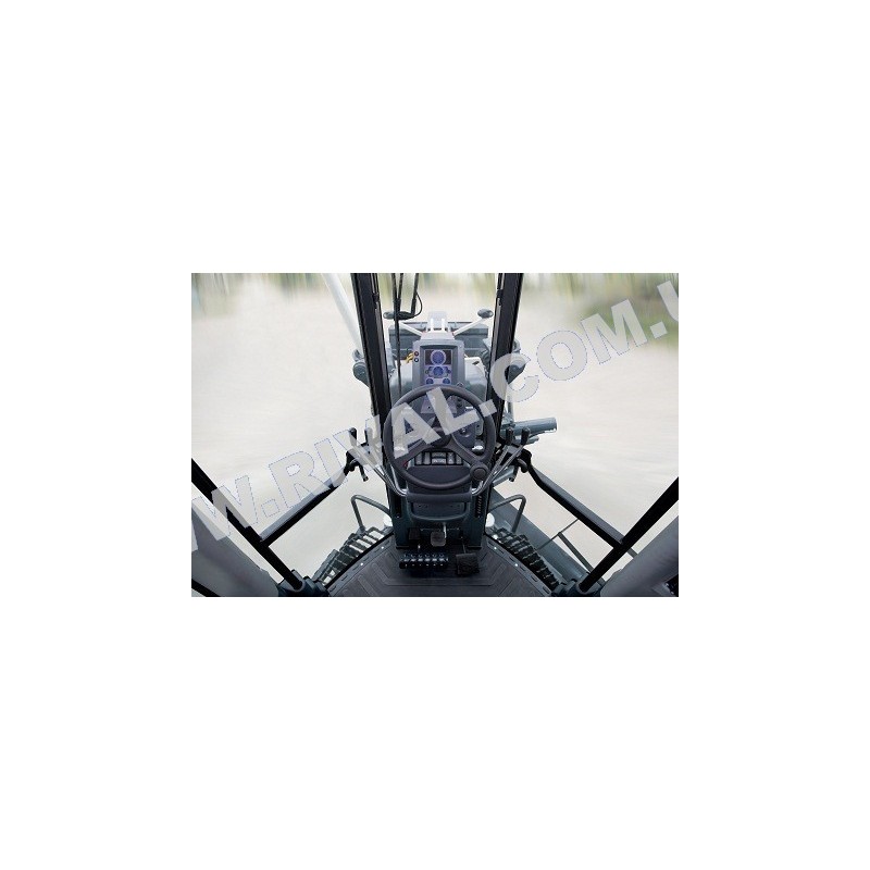 Автогрейдер оборудован комфортабельной кабиной с эргономичным рабочим местом оператора оснащённым климатеческой установкой, тонировкой остекления для защиты от солнечных лучей. Инновационная система трансформации рабочего места обеспечивает удобное управление как сидя, так и стоя.