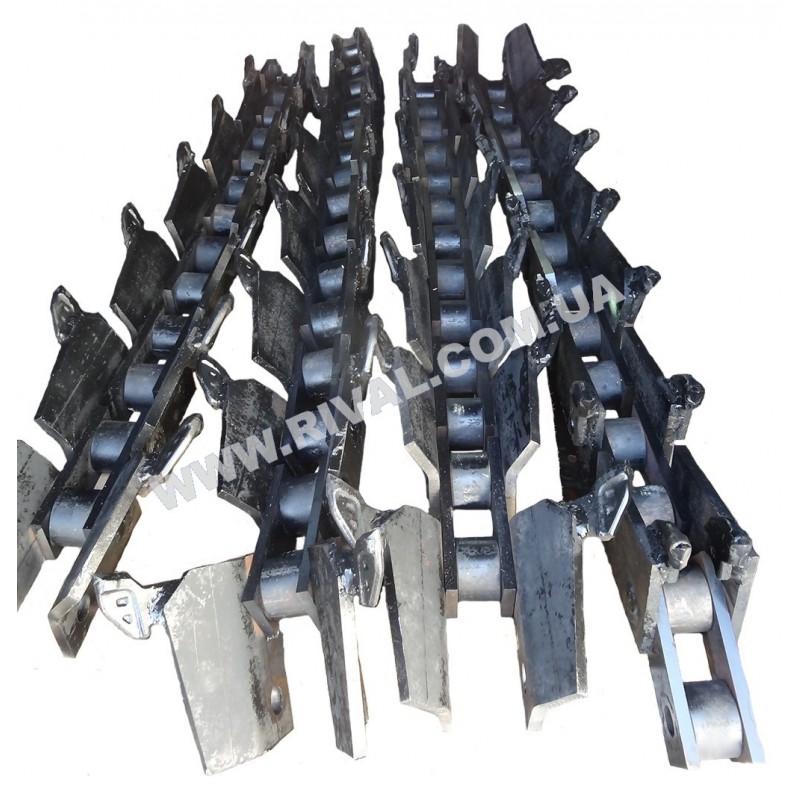 Основное полотно цепи представляет собой сварную конструкцию, которая состоит из наружных и внутренних звеньев соединенных между собой. Ширину и скорость рытья, а также способность выгребать землю, определяет конструкция и способ расстановки зубьев на полотне цепи.