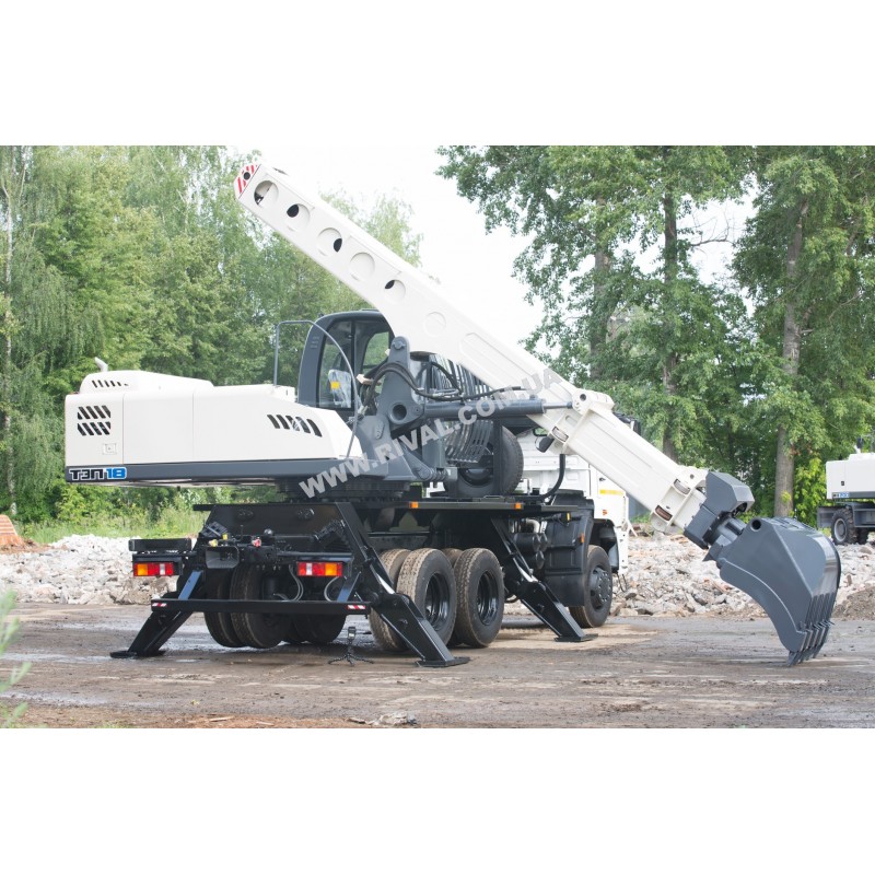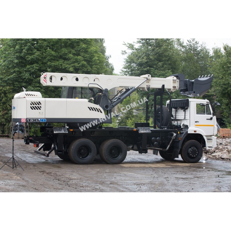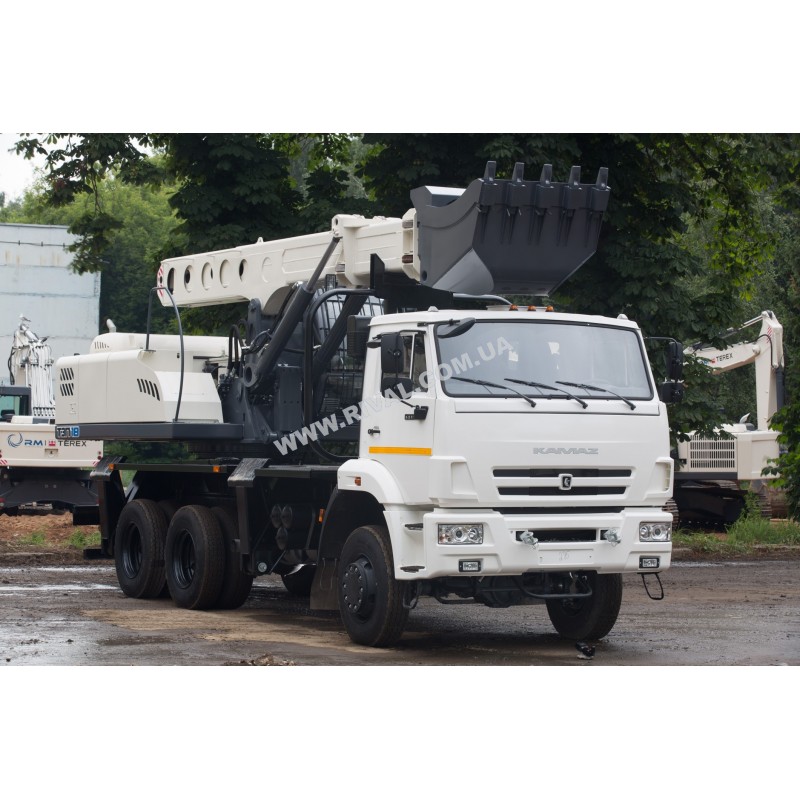 Экскаватор-планировщик с телескопическим рабочим оборудованием на автомобильном шасси КамАЗ предназна-чен для разработки траншей, карьеров в грунтах I-IV категорий, а так же для выполнения различных видов земляных работ в условиях строительства: зачистки и планировки откосов и насыпей; производства земляных работ в трудно-доступных местах с ограничением по высоте.