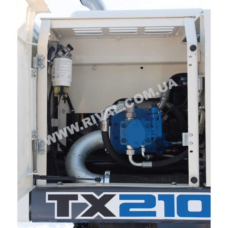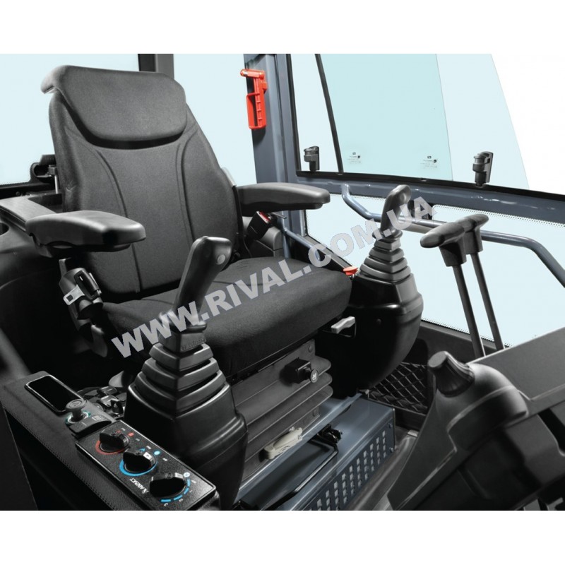 Максимальная производительность обеспечивается за счет применения экономичного двигателя ЯМЗ 534 мощностью 128кВт, высококачественных компонентов гидрооборудования Bosch-Rexroth и интеллектуальной системы управления с 7 предустановленными режимами. За температуру системы отвечает единый блок радиаторов двигателя и гидросистемы охлаждаемый вентилятором с регулируемым гидроприводом Fan drive от Bondioli & Pavesi (Италия). Машина оборудована новой комфортабельной кабиной (внутренний объём 2,7 м3) с эргономичным рабочим местом оператора оснащённым климатеческой установкой, открывающимися передними и задними окнами, шторками и форточками на дверях.