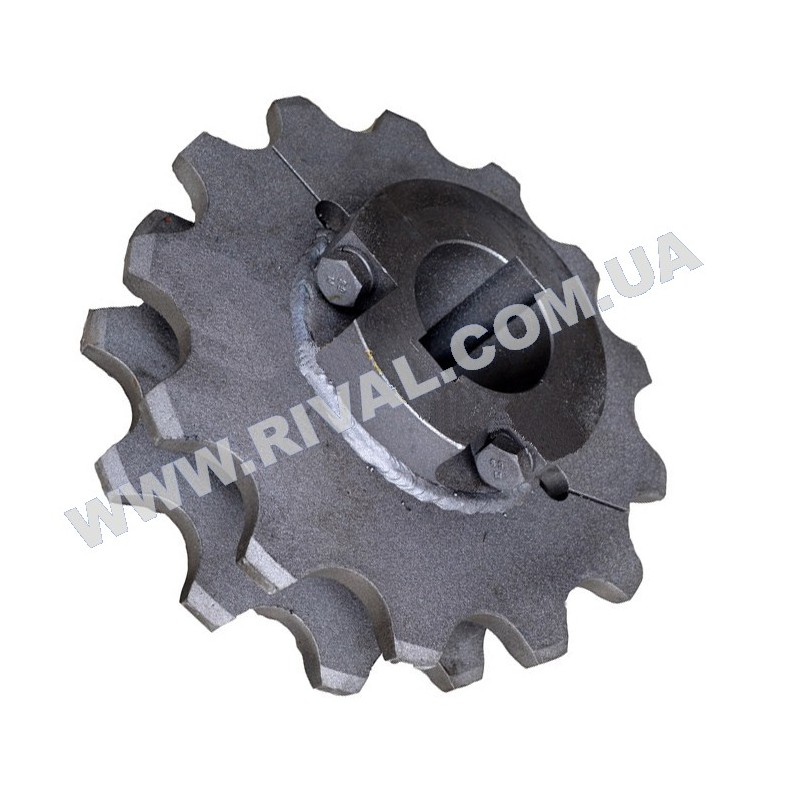 Ведущая звездочка цепи траншейного экскаватора асфальтореза, из дувх половин соединяющихся между собой болтами она обжимает вал с двух сторон и закрепляется при помощи шпонок чтобы обеспечить ващение вала. также установка данной звездочки предусмотрена для редукторов ЭТЦ-165, 161